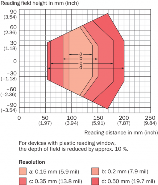 Расстояние считывания | 55 mm ... 200 mm 1) |