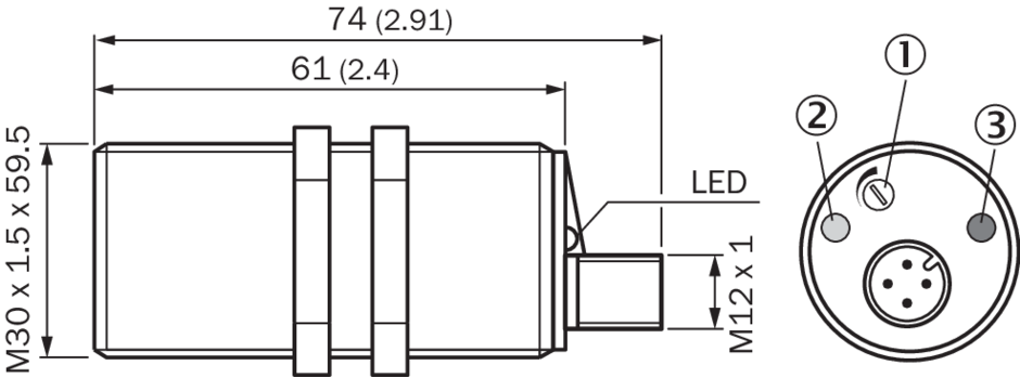 Габаритный чертеж CM30, вровень с плоскостью, штекер