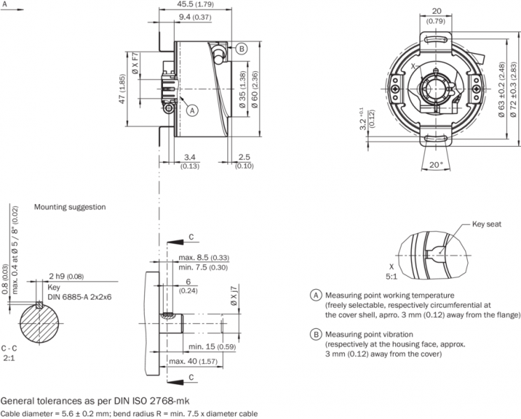 Измерительный шаг | 0,3 ″, при интерполяции синусоидальных и косинусоидальных сигналов, например 12 бит, не относится к безопасности |