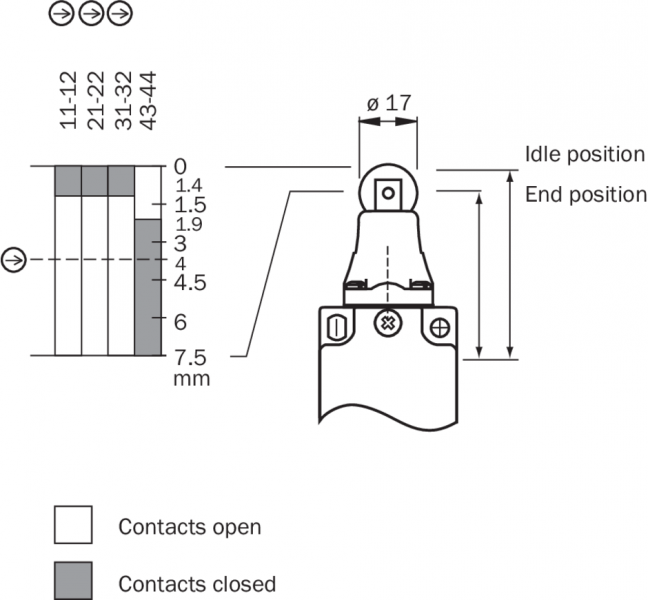 Безопасное состояние в случае возникновения ошибки | Выключатель не имеет внутренней функции обнаружения ошибок и в случае неисправности не может перейти в безопасное состояние. Обнаружение ошибок осуществляется с помощью подключенного логического блока, направленного на обеспечение безопасности. |