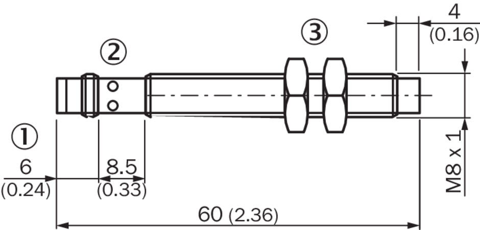 Габаритный чертеж IM08 Triplex, штекер, не вровень с плоскостью