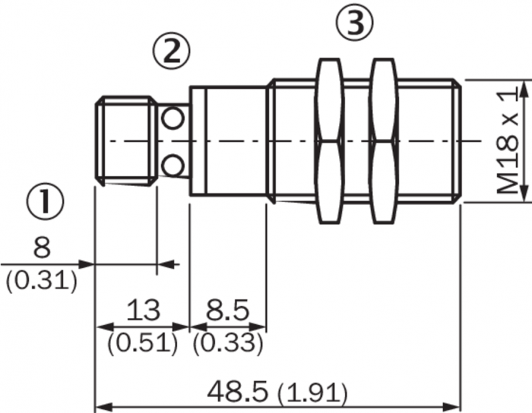 Габаритный чертеж IM18 Triplex, штекер, почти вровень с плоскостью, короткий вариант