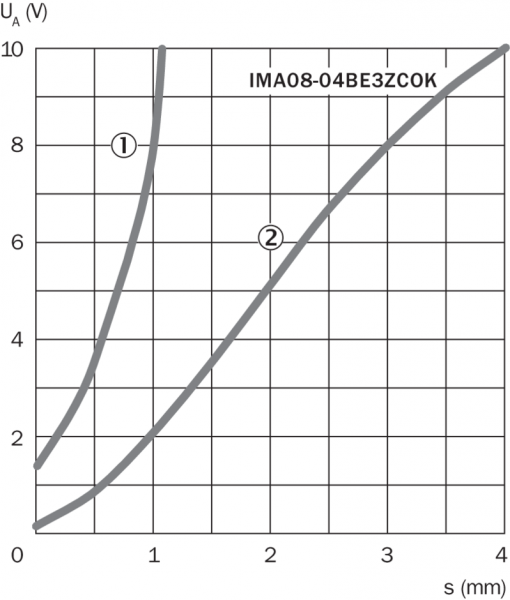 Выходное напряжение на QA1 | s = 0 mm: 0 V/-0 +0,4 V (23 °C) s = 2 mm: +5,2 V/ +-0,4 V (23 °C) s = 4 mm: +10 V/ +-0,4 V (23 °C) |