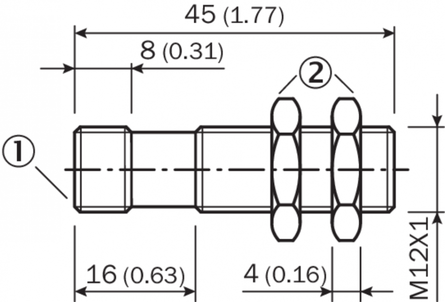 Габаритный чертеж IMA12, штекер, почти вровень с плоскостью