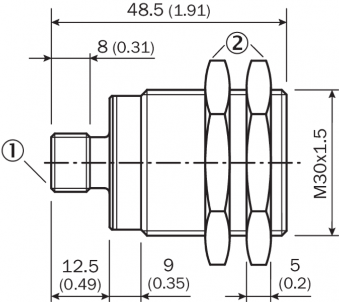 Габаритный чертеж IMA30, штекер, почти вровень с плоскостью
