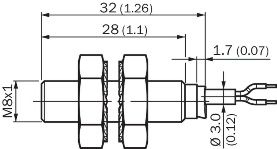 Габаритный чертеж IMB08 короткий вариант, кабель, вровень с плоскостью