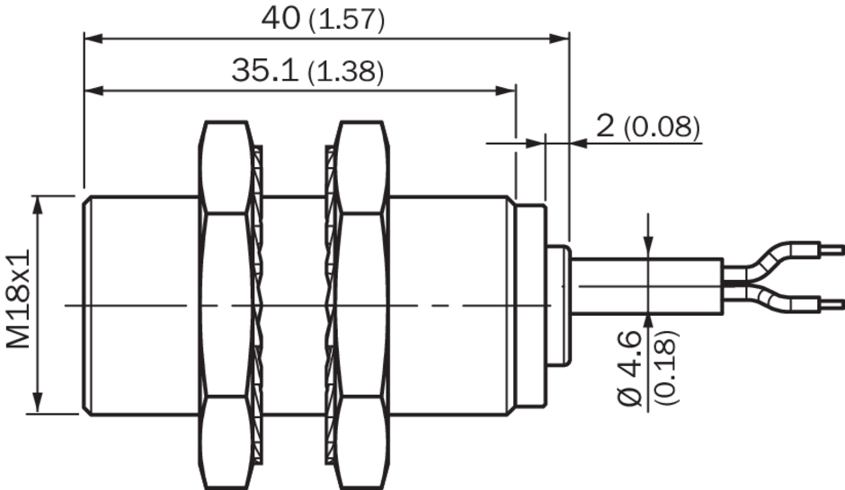 Габаритный чертеж IMB18 короткий вариант, кабель, вровень с плоскостью