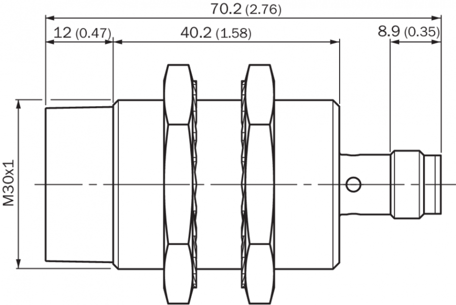 Габаритный чертеж IMB30 стандарт, штекер M12, не вровень с плоскостью