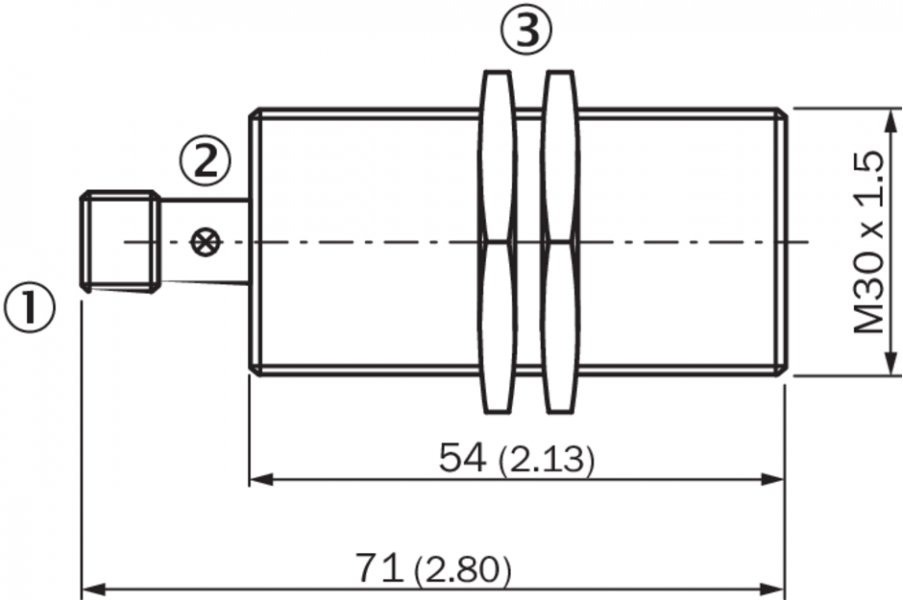 Габаритный чертеж IME30 стандарт, штекер, вровень с плоскостью