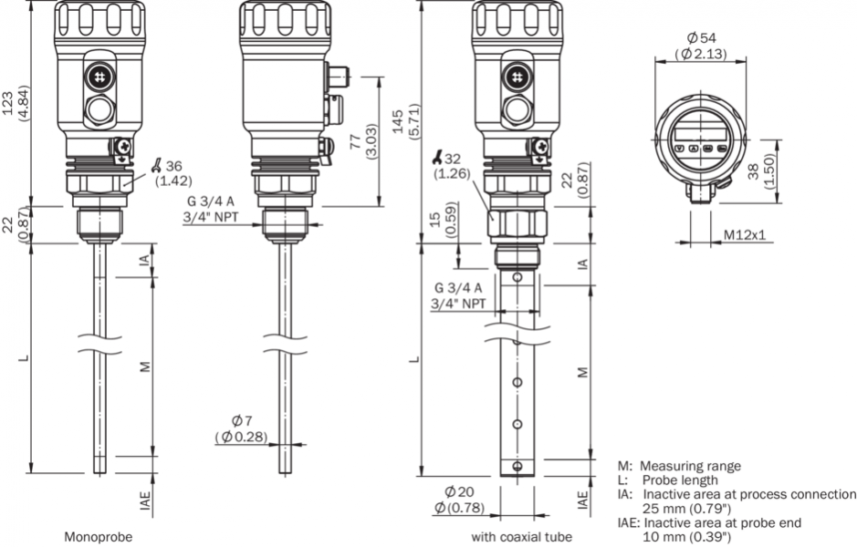 | Диэлектрическая постоянная | ≥ 5 в стержневом зонде ≥ 1,8 с коаксиальной трубой |