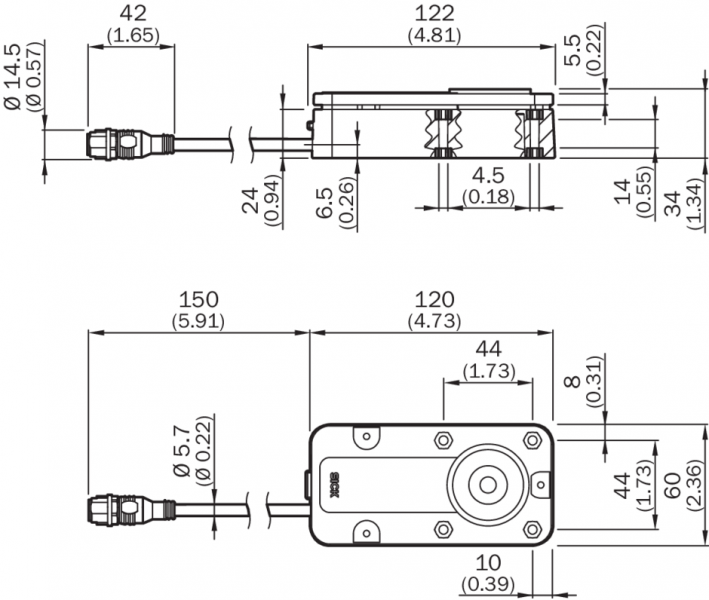 Напряжение питания Uv при подключении каскада | Датчик | 24 V DC (22,8 V DC ... 28,8 V DC) | Магнит | 24 V DC (21,6 V DC ... 28,8 V DC) |