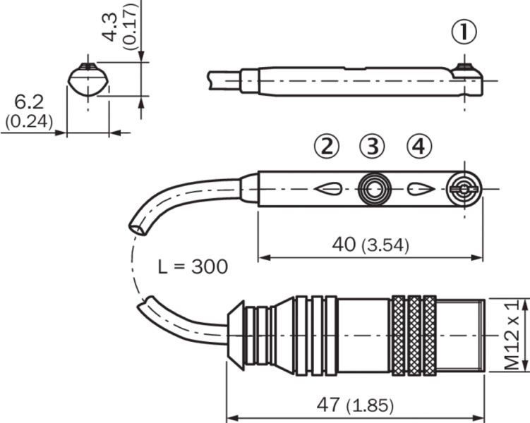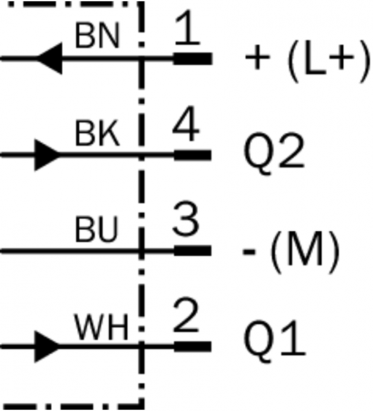 | Тип подключения | Кабель с разъемом M12, 4-конт., с гайкой с накаткой, 0,3 m |