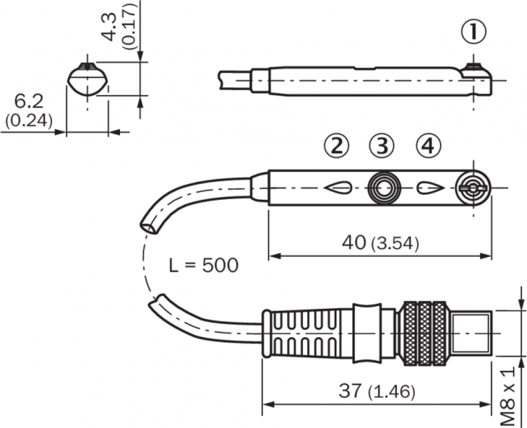 Габаритный чертеж Кабель с разъемом M8, с гайкой с накаткой
