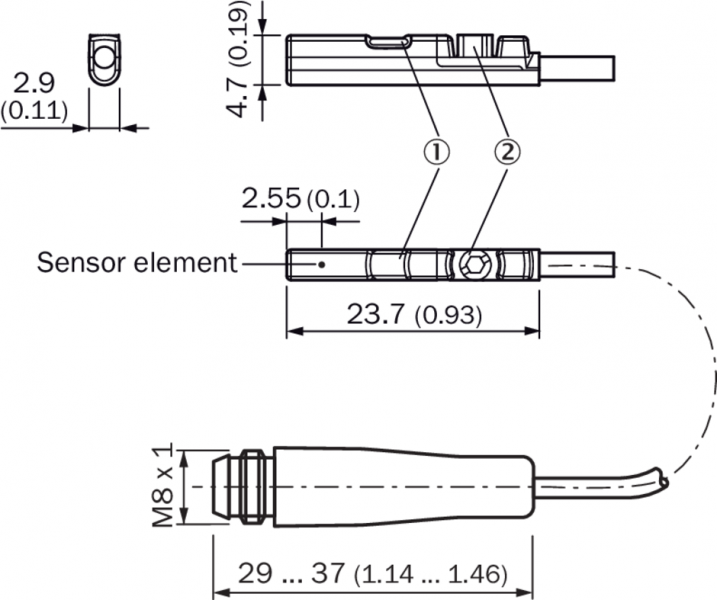 | Тип подключения | Кабель с разъемом M8, 2-конт., с гайкой с накаткой, 0,3 m |