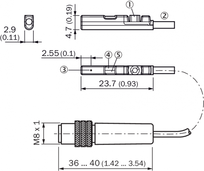 | Тип подключения | Кабель с разъемом M8, 3-конт., с гайкой с накаткой, 0,3 m |
