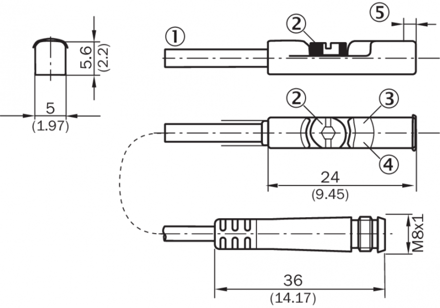 Габаритный чертеж Кабель со штекером M8