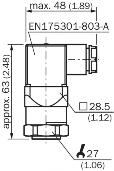 Габаритный чертеж Корпус с угловым штекером (DIN 175301-803 A), IP65