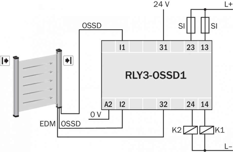 RLY3-OSSD1 для световой завесы безопасности с контролем контакторов