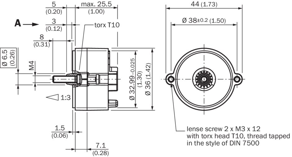 Кривая кода | С возрастанием, при вращении вала. По часовой стрелке, если смотреть в направлении A (см. размерный чертеж)., При повороте вала по часовой стрелке, если смотреть в направлении A (см. размерный чертеж) |