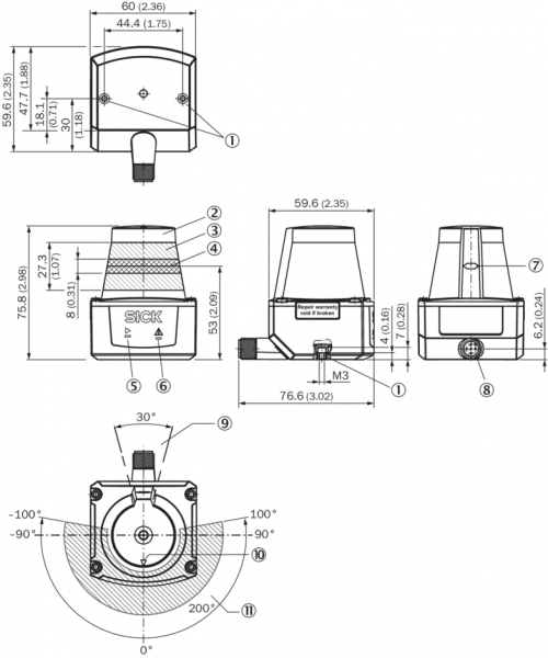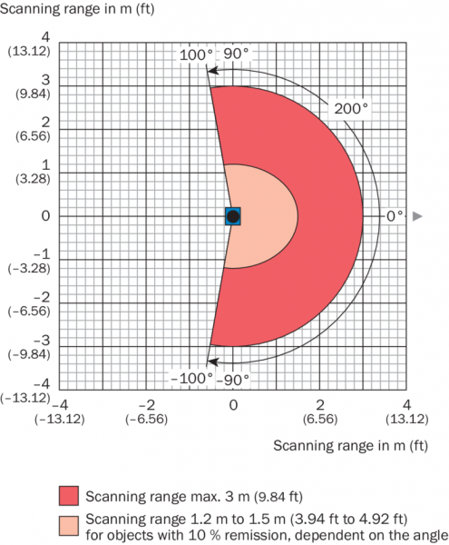 1) Дальность действия 1,2 м ... 1,5 м для объектов с диффузным отражением 10 % в зависимости от угла.