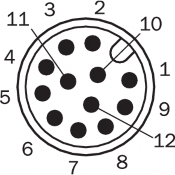 Схема контактов Вид со стороны вставки, штекер M12