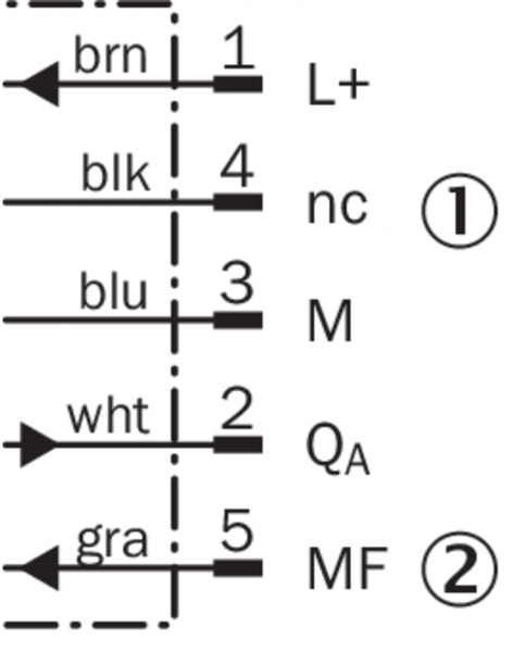 Схема соединений UM18-21xxx6xxx UM18-21xxx7xxx штекер M12, 5-конт.