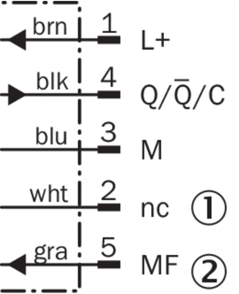 Схема соединений UM18-21xxxAxxx штекер M12, 5-конт.