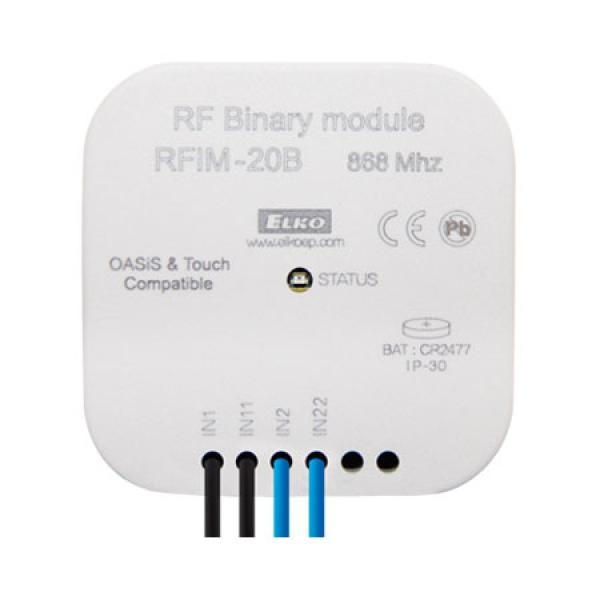 - RFIM-20B: 2 входа, предназначенные для коммутации копкой, импульсом. Постоянно замкнутые контакты = обычный выключатель
