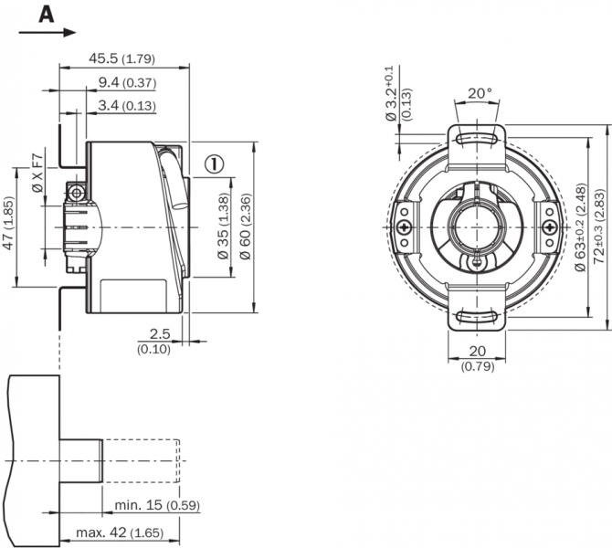 | Тип защиты | IP65, со стороны вала (согласно IEC 60529) IP67, кабельный отвод со стороны корпуса (согласно IEC 60529) |