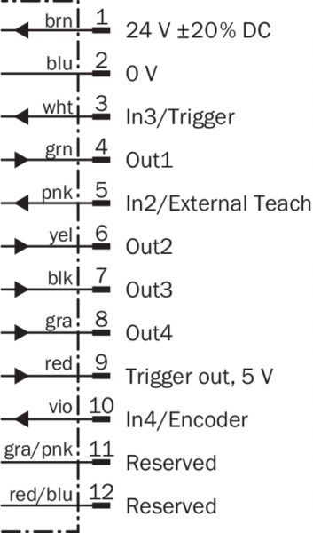 | Соединения | M12, 12-контактный штекер M12, 4-контактный гнездовой разъем |