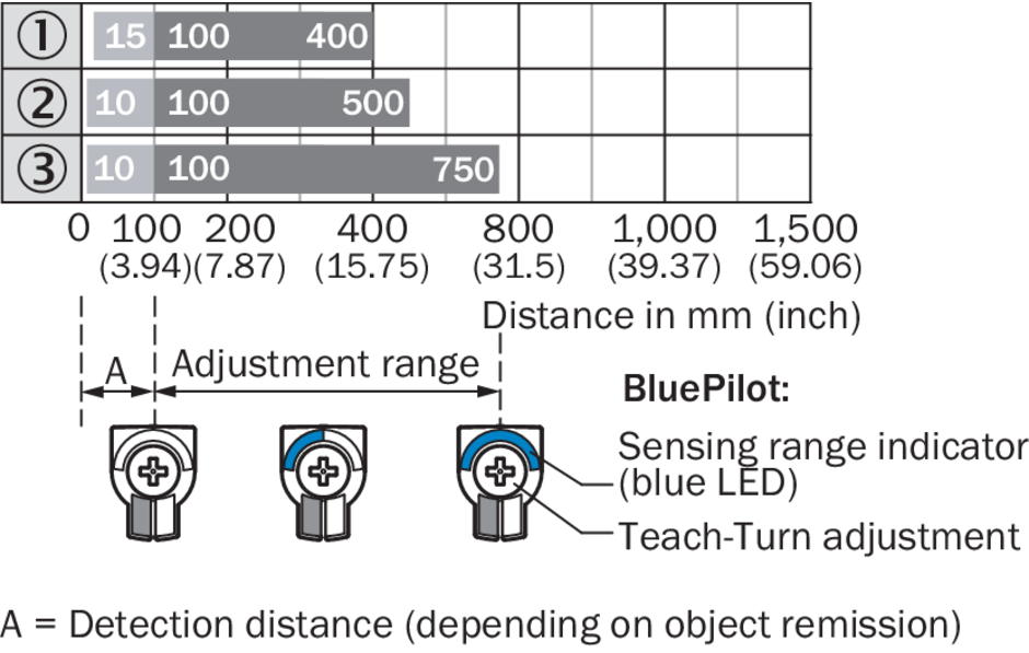 Настройка | BluePilot: поворотно-нажимной элемент с индикацией расстояния срабатывания IO-Link |