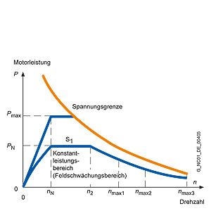 Typical speed/power graph for 1PH8 asynchronous motors1)