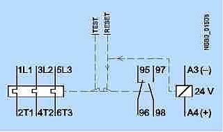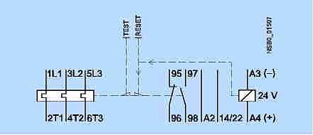 Примечание: Кнопка тестирования должна быть нажатой в течение всего времени испытания. Испытание вспомогательных контактов и вспомогательных цепей управления возможно с использованием ползункового переключателя положения. Приведение в действие ползункового переключателя имитирует срабатывание реле. В течение этой имитации контакт NC (95-96) находится в открытом состоянии а NO контакт (97-98) замкнут. Т.о. проверяется правильность соединения вспомогательных цепей и их исправность. После тестирования реле выводится из состояния расцепления (срабатывания) нажатием на кнопку "RESET". СамоконтрольЭлектронные реле перегрузки 3RB20/3RB21 имеют функцию самоконтроля, т.е устройства постоянно контролируют свои собственные основные функции и переводят реле в состояние расцепления при обнаружении внутренней ошибки. Отображение рабочего состоянияСоответствующее рабочее состояние электронные реле перегрузки 3RB20/3RB21 отображают путем соответствующего положения ползункового переключателя. После расцепления по перегрузке , обрыву линейного провода, несимметричной нагрузке по фазам или обнаружения замыкания на землю (определение замыкания на землю возможно только в реле 3RB21) ползунок перемещается влево к маркирове "O", в противном случае он остается у маркировки "I". Вспомогательные контактыЭлектронные реле перегрузки 3RB20/3RB21 имеют NO контакт для сигнализации о расцеплении и NC контакт для отключения контактора. | |||||||||||||||||||||||||||||||||||||||||||||||||||||||||||||||||||||||||||||||||||||||||||||||||||||||||||||||||||||||||||||||||||||||||||||||||||||||||||||||||||||||||||||||||||||||||||||||||||||||||||||||||||||||||||||||||||||||||||||||||||||||||||||||||||||||||||||||||||||||||||||||||||||||||||||||||||||||||||||||||||||||||||||||||||||||||||||||||||||||||||||||||||||||||||||||||||||||||||||||||||||||||||||||||||||||||||||||||||||||||||||||||||||||||||||||||||||||||||||||||||||||||||||||||||||||||||||||||||||||||||||||||||||||||||||||||||||||||||||||||||||||||||||||||||||||||||||||||||||||||||||