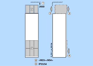 Шкаф преобразователя со степенью защиты IP23 поставляется с дополнительными панелями (кожухами) и пластиковыми вентиляционными решётками для отверстий входа и выхода воздуха. Высота шкафа увеличивается на 400 мм. Ограждения, используемые с опцией M60, также включаются в объём поставки. По транспортным причинам, панели поставляются отдельно и должны быть установлены на месте.