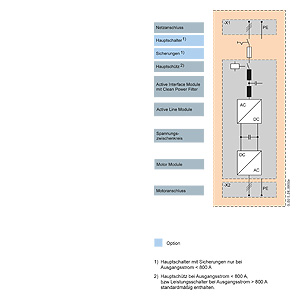 Базовое исполнение шкафа SINAMICS S150 с некоторыми дополнительными опциями
