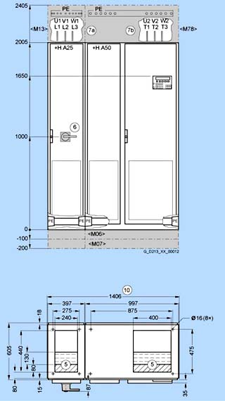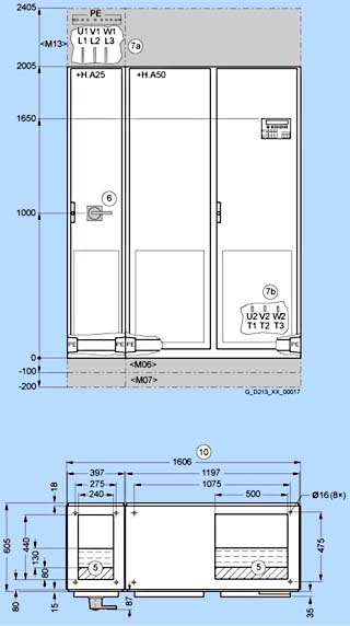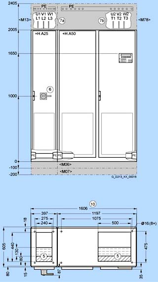 | 315 | 500 | - | 549 | 605 | 590 | 250 | 400 | 460 | 15.9 | 17.5 | - | 1.96 | 77 | 79 | 6SL3710-7LE36-1AA0 |