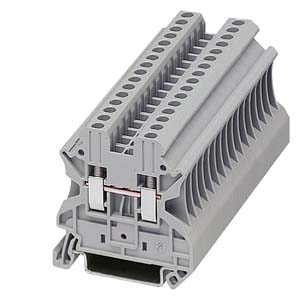 8WH through-type terminals are characterized by their compact design and optimum handling. They are available in conductor cross-section areas from 2.5 to 35 mm2 and are inscribable with labels. The double bridge slot enables individual chain bridging with connecting combs. Corresponding accessories are available for testing and labeling. Sure electrical and mechanical contact with the mounting rail is assured by simply snapping the terminals onto the rail.