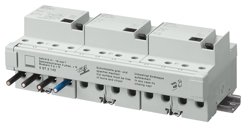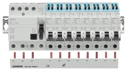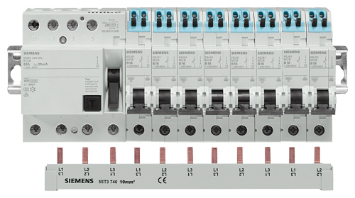 4-пол. 5SM3 RCCBs монтируются на шину либо вместе либо в комбинации с автоматическими выключателями. RCCBs с левосторонней N-клеммой облегчают монтаж, так как используется обычная шина, такая же как и для автоматических выключателей.