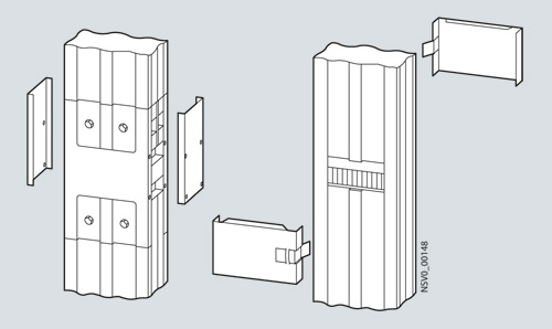 Более высокая степень защиты достигается за счет установки дополнительных крышек на все точки стыковки и отводные точки подключения (спереди и сзади)