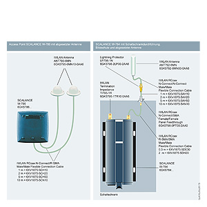 SCALANCE W использует широкий диапазон аксессуаров для прямого подключения антены, монтажа в шкафы и элементы грозозащиты