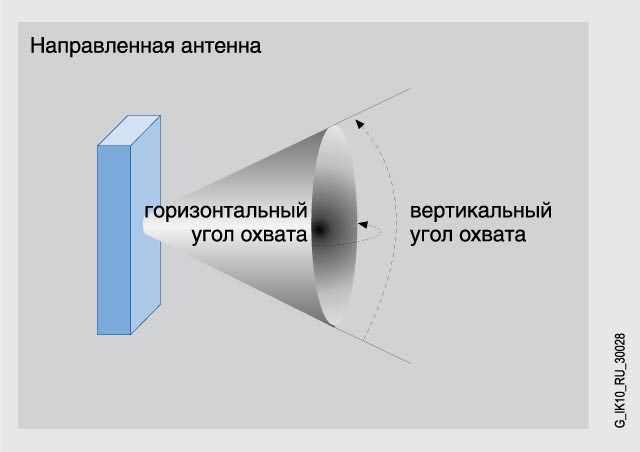 Направленная антенна формирует конусообразное электромагнитное поле (для большей ясности на рисунке антенна изображена в виде раструба). Наиболее сильное излучение создается вдоль оси этого конуса. Отклонение от оси конуса на угол более 10º практически исключает возможность установки радиосвязи. Именно поэтому такая антенна называется “направленной”.