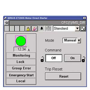 Данные фидера двигателя могут передваваться в систему управления процессом. Интеграция пускателей двигателей SIRIUS ET 200S в процесс управления позволяет избегать ошибок в фидере двигателя или быстро их обнаружить и исправить. Таким образом, уменьшаются простои или предотвращаются прежде чем им произойти.