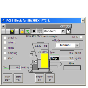 Для SIMATIC PCS 7 предлагаются конфигурационные пакеты с функциональными блоками для модулей взвешивания SIWAREX U, SIWAREX M и нового SIWAREX FTA. Данные блоки могут использоваться как для стандартных систем автоматизации, так и для систем повышенной надежности.