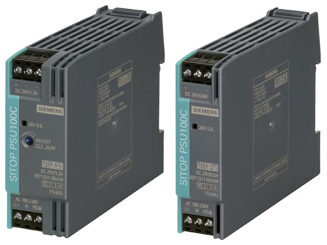 Благодаря экономящему место тонкому дизайну, новая серия блоков питания для небольших мощностей, прекрасно подходит для применения в щитах управления и небольших электрических шкафах. Эти импульсные блоки питания характеризуются их низкими потерями по всему диапазону нагрузки. Потери очень малы даже в холостом режиме, что дает преимущество применения этих блоков питания в установках и производствах, которые часто находятся в режиме ожидания. Блоки питания серии SITOP PSU100C имеют широкий входной диапазон при подключении к сетям переменного и постоянного тока и съемные клемные блоки для легкого подключения.