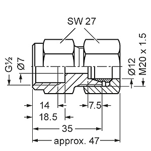 7MF9008-1G. connection gland, dimensions in mm