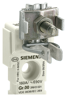 | 3NH3035 | 017 | ОСНОВАНИЕ ПЛАВКОЙ ВСТАВКИ Uном.=660В, Iном.=160А, ТИПОРАЗМЕР 00, 1-ПОЛЮСН. ПЛОСКИЙ / ШТЫРЕВОЙ ЗАЖИМ 3X1,5-16 КВ.MM, С КЛЕММНЫМ ЗАЖИМОМ | 22.02 |