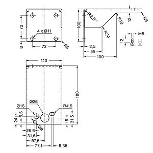 Монтажный уголок (7MF9006-6LA)/(M14) для 2-х шпиндельного вентильного блока, размеры в мм