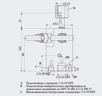 Все версии вентильных блоков имеют подключение к процессу ½-14 NPT.