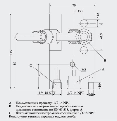 2-х и 5-ти шпиндельный вентильный блок доп. обеспечивает сборос давления со стороны измерительного преобразователя и контроль характеристики измерительного преобр. давления.