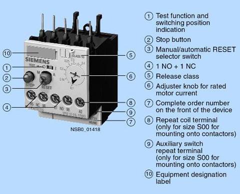 Вспомогательные блок-контактыЭлектронные реле перегрузки 3RB10 снабжены одним замыкающим контактом для сигнализации расцепления и одним размыкающим для отключения контактора. | ||||||||||||||||||||||||||||||||||||||||||||||